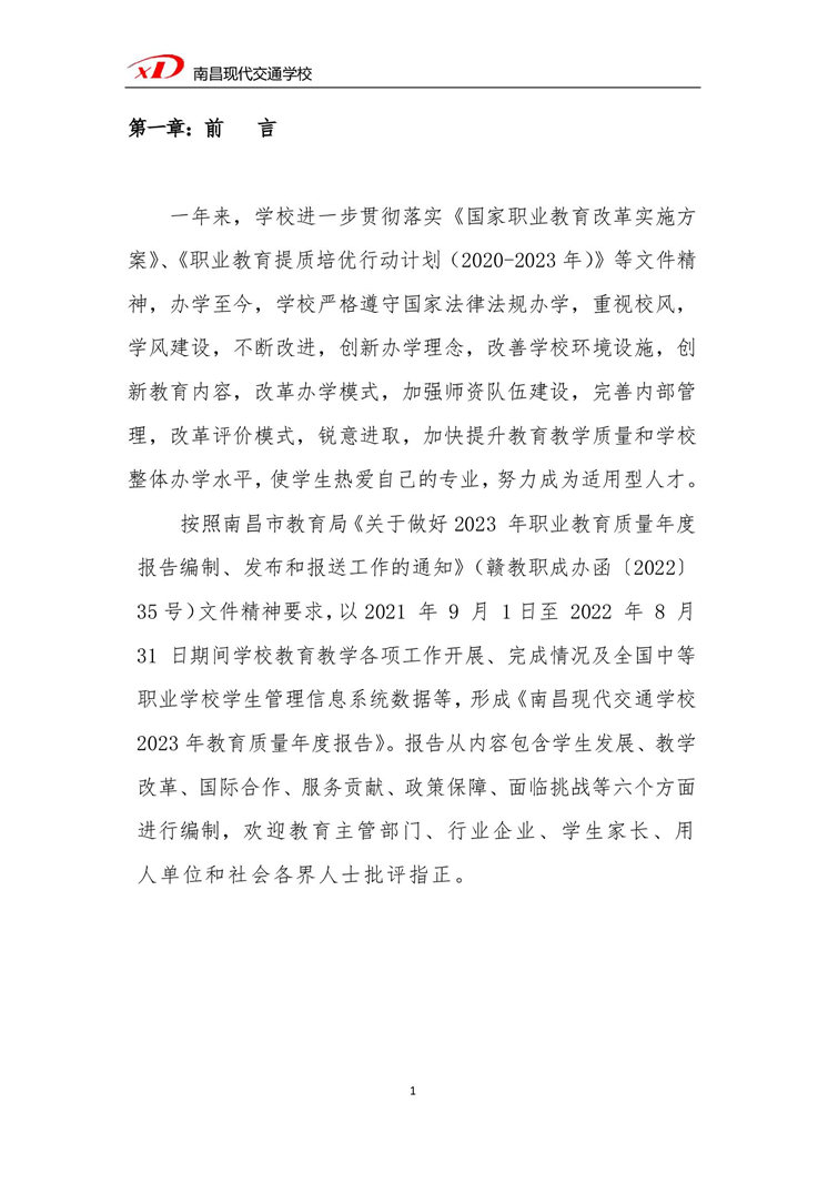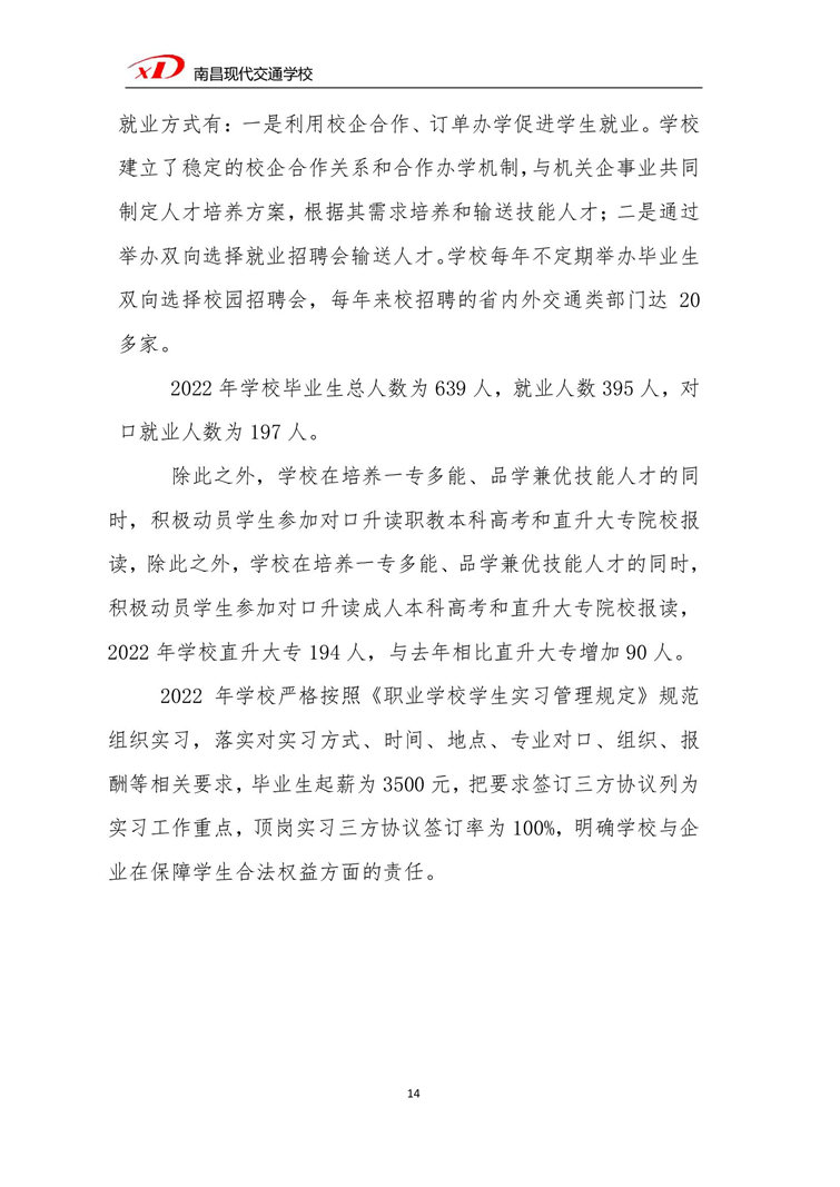 南昌市南昌現(xiàn)代交通學(xué)校2023年中等職業(yè)教育質(zhì)量年度報(bào)告